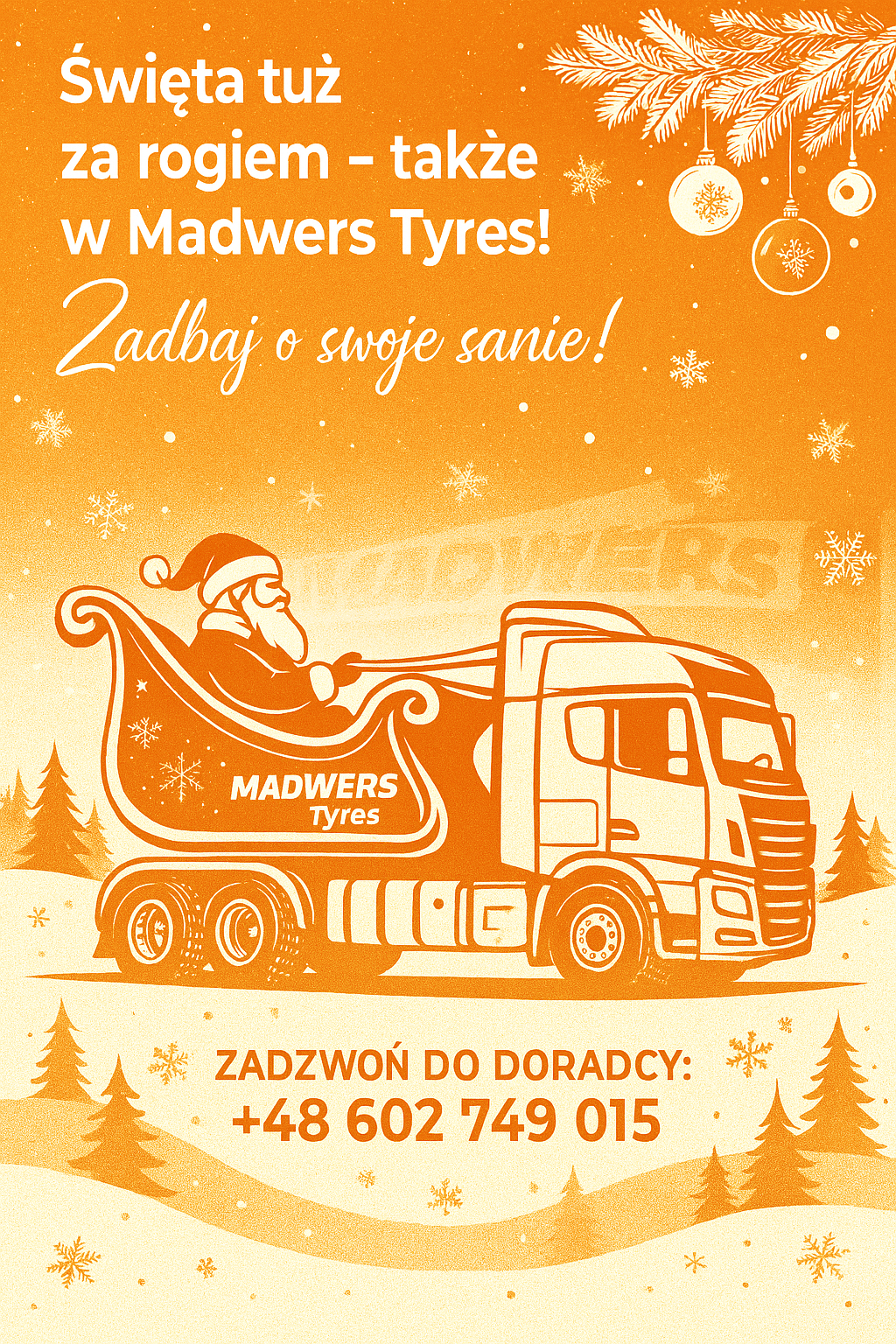 🎄✨ Święta tuż za rogiem – także w Madwers Tyres! ✨🎄 Każdy Mikołaj wie, że aby dotrzeć do celu, jego sanie muszą być w idealnym stanie. 🚛🛷 Dlatego warto zadbać